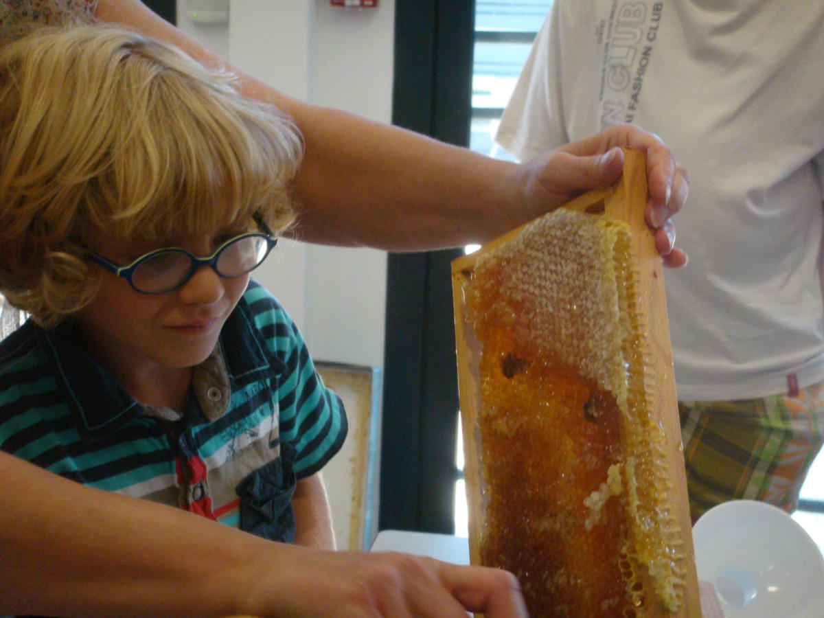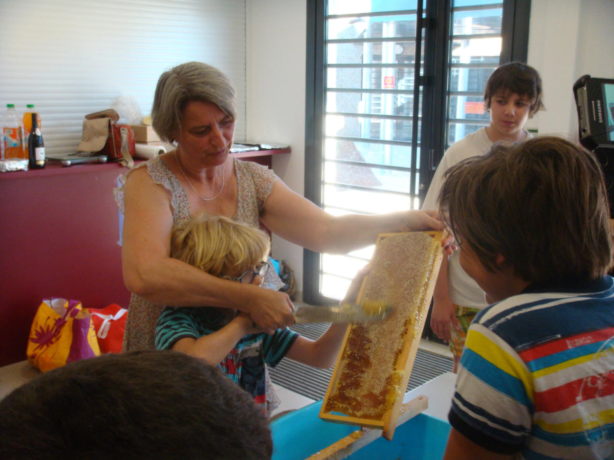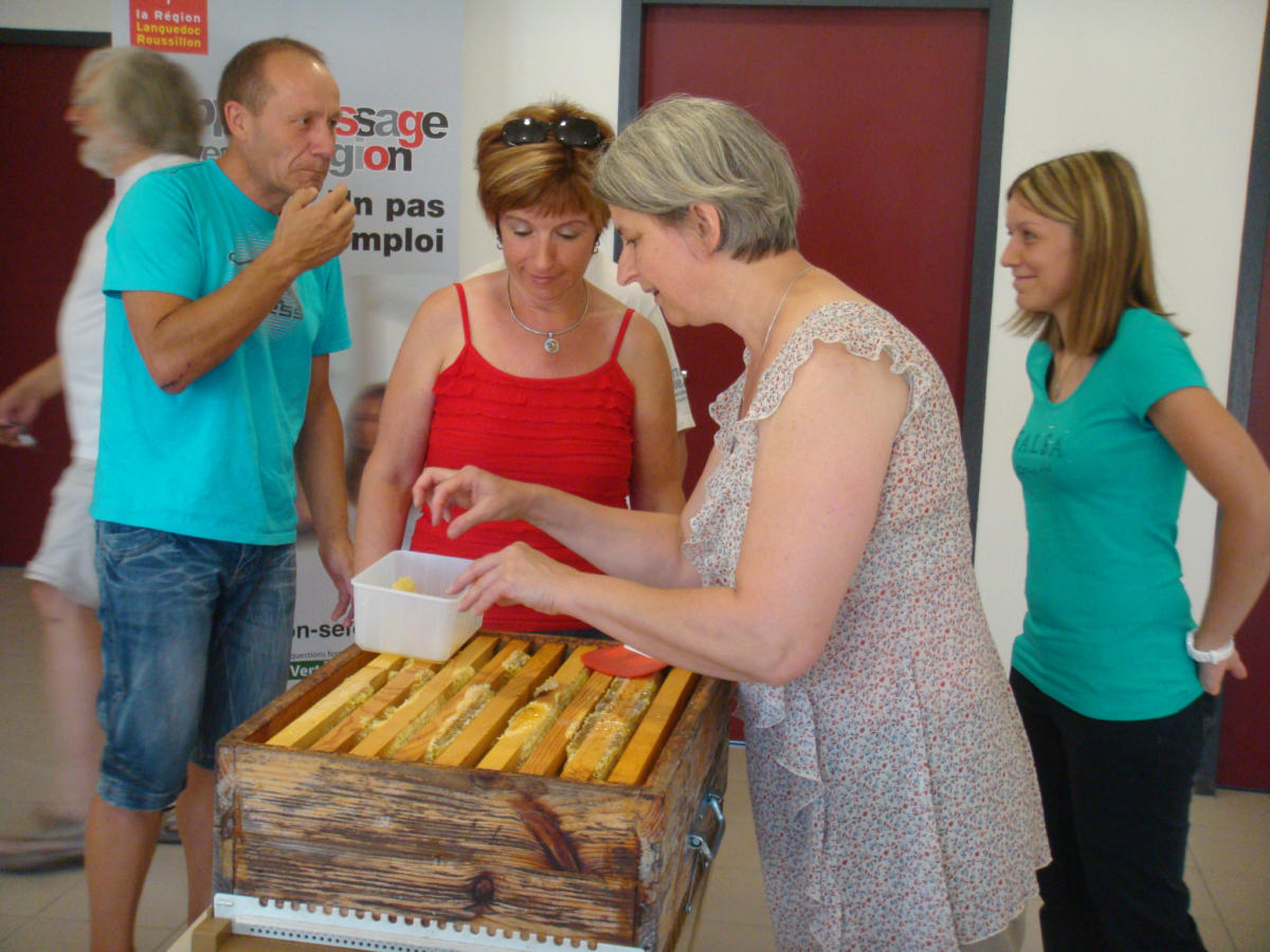 A partir d’une ruche ordinaire, j’ai aménagé sur celle-ci deux fenêtres et les volets nécessaire à l’obscurité de la ruche. Pour l’accès des abeilles à la ruche un tube descend depuis la toiture, il est relié à un boitier étanche fixé à la ruche. Résultat : aucune abeille dans le bureau mais la possibilité de les observer en toute quiétude.